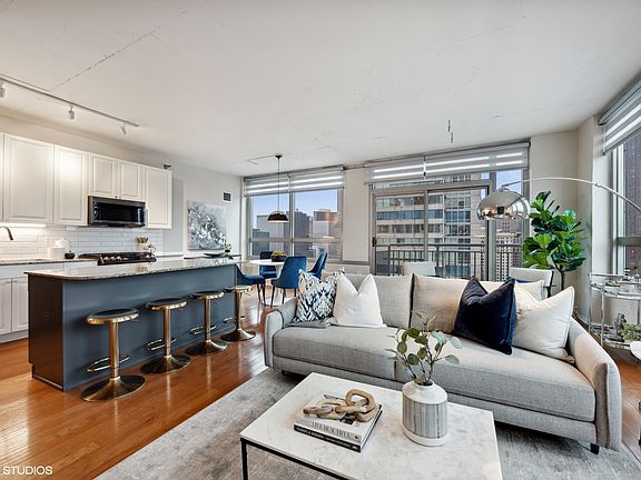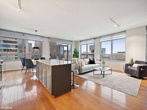 Welcome home to 701 S. Wells Unit 2601, a spectacularly chic corner unit in a full amenity building, located in the heart of the South Loop. This 2 bedroom 2 bath unit boasts unobstructed views of the city, lake and river, which can be enjoyed from two window walls and your private balcony. Spacious, elegant, and updated, the condo has an ideal layout with open loft vibes in the main living space, and split/fully enclosed bedrooms. The kitchen features a 2021 $6,000 Samsung stainless steel appliance package, custom backsplash, new stainless sink and touchless faucet. New owner will enjoy hardwood floors in main living area, Hunter Douglas electric blinds, in-unit laundry, and a separate area for your dining room table with gorgeous city views. Assessments include gas for heat and cooking, hot water, Internet, Wi-Fi, Cable/TV and air conditioning! Deeded garage parking spot included in price. Building amenities and lobby were remodeled last year and residents enjoy a stylish party room and terrace, yoga room, full gym, library, bike room, and storage locker, as well as 24/7 front desk service and onsite management/engineer. Walking distance to CTA, Loop, Metra, Lakefront, Marianos, Jewel, Target, Trader Joes, and plenty of dining options. Multi Million dollar Chicago Riverwalk project and park well underway right across the street from your home, all the way down to 18th street!