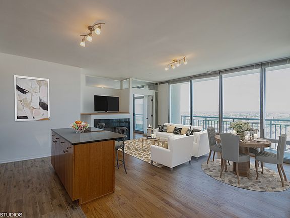 This high on the 33rd floor condo offers an open floor plan for the living/dining room combo with west views of the city. The kitchen has new stainless steel appliances with a breakfast island. The master suite has a full bath featuring separate shower & jacuzzi tub along with a walk-in closet. There is an In-unit washer and dryer. The building has an exercise room, business center and .....Garage Parking p-130 included!! Per seller flooring is engineered wood. Located in an exciting part of the city, schedule your tour today!