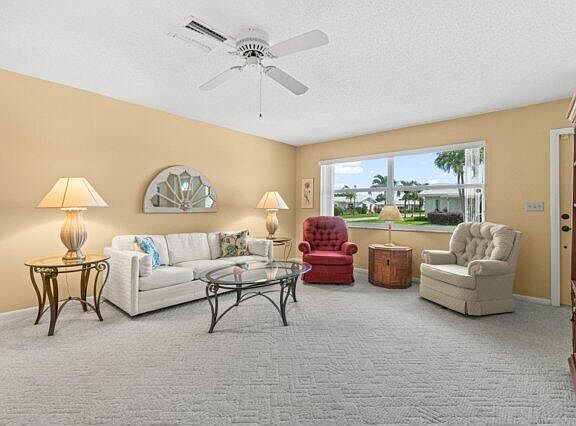 Welcome to this impeccably maintained, light-filled, 2-bedroom, 2-bathroom home situated on a desirable corner lot, surrounded by lush, manicured gardens. Enjoy your morning coffee or evening cocktails on the private, hedged patio, or relax in the stunning 30-foot-long Florida room that spans the entire back of the house. Located in Palm Beach Leisureville, a vibrant 55+ community, residents enjoy access to an 18-hole par-3 golf course (free to residents), three clubhouses, heated and cooled pools, and a wealth of amenities and activities. Just a short drive to local shopping, dining, and beautiful ocean beaches, this home offers the best of Florida living in a welcoming, active neighborhood.