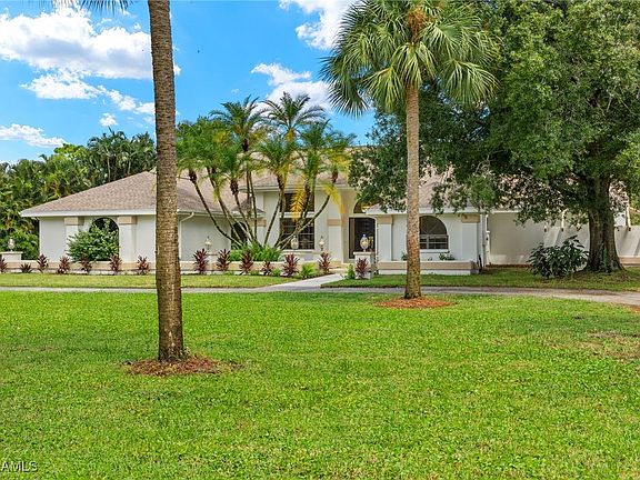 REDUCED! Acreage in the middle of the city!? This is a rare opportunity to own a large property in the Woodlands - a small, quiet non-HOA neighborhood of luxury homes on extra-large lots. Tucked towards the back of this quiet cul-de-sac is this elegant custom home, which is NOT IN A FLOOD ZONE. Boasting a NEW ROOF (2023) and nearly 3400 sq ft of COMPLETELY REMODELED living area on just under 1.5 ACRES, this incredible home includes a MASSIVE HEATED POOL AND OUTDOOR LIVING SPACE - COMPLETE WITH FULL OUTDOOR KITCHEN. The interior has undergone RENOVATIONS WORTH NEARLY $200K and features a chef's kitchen with custom cabinetry, high-end QUARTZ COUNTEROPS, top-of-the-line Thor and Frigidaire appliances, and a MASSIVE OPEN ISLAND overlooking the large living-room, which is centered around a floor to ceiling FLORIDA CORAL ROCK FIREPLACE. There are soaring cathedral ceilings throughout, which overlook 24-inch tile flooring in the entire house. The three bathrooms have all been redone and include matching quartz-topped vanities with frameless glass walk-in showers. The primary bath also includes a jacuzzi tub. The primary suite also has one of the largest walk-in closets you've ever seen! The OVERSIZED ATTACHED THREE-CAR GARAGE AND WORKSHOP provides plenty of covered parking along with extra outdoor parking space and a circular drive. The lot is a serene blend of MATURE TREES AND LANDSCAPING, fruit trees that include MANGOS, ORANGES, LEMONS, MACADAMIA, and even a CINNAMON tree, all on a lot size that is SIX TIMES the size of a normal Cape Coral lot. Perhaps best of all, the availability of this property means you no longer have to go way outside of civilization to find an acreage home in Cape Coral! This is the one you were waiting for - let's book your tour! SELLER FINANCING IS AVAILABLE AT 20% DOWN AT 5% WITH AN 18 MONTH BALLOON