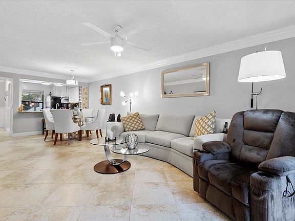 ''Step into this immaculate ground floor condo offering breathtaking waterfront views. The interior has been freshly painted and features exquisite 20'' travertine floors, custom plantation shutters, and elegant crown molding throughout. The kitchen boasts granite counters, stainless steel appliances, and leads to two fully remodeled bathrooms.This home is equipped with hurricane impact windows, an interior storage room, and convenient inside laundry. Step out onto the covered screened patio, complete with accordion shutters and a roll-down patio sunscreen, providing a serene view of the lake and lush tropical foliage.Updates include a newer A/C and water heater, ensuring comfort and reliability. Enjoy the convenience of being located near shopping, restaurants, hospitals, Gardens Mall, I95, Turnpike, Downtown at the Gardens, and the beach. Whether you're looking for a rental investment, a part-time residence, or a full-time home, this property offers an exceptional opportunity."
