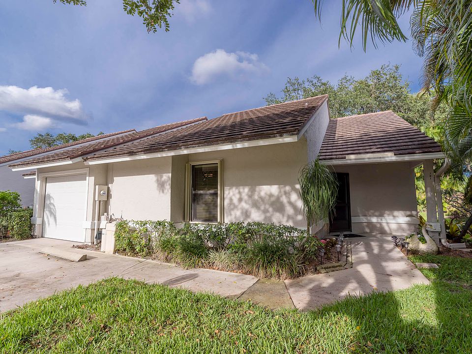Live the resort-style lifestyle in the highly sought-after community of Glengary Villas at PGA National! This 2BR/2BA single-story corner unit is bright and spacious with volume cathedral ceilings, greenhouse windows, and a desirable open floor plan that includes a den which can be converted into a home office/gym/bedroom/playroom! This home is move-in ready, with freshly painted walls and kitchen cabinets, and brand-new stainless-steel appliances. There's also a large screened-in patio with tons of greenery for privacy, plus a 1-car garage. Glengary Villas is a cozy village close to the heart of PGA National with 5 championship golf courses, an Olympic pool in a tropical setting with poolside dining, luxurious spa facilities with full amenities, fine restaurants, and much more! Club membership can be obtained but is not required. Great investment opportunity, no rental restrictions, great for short term rental opportunities, 1 pet accepted up to 50lbs.