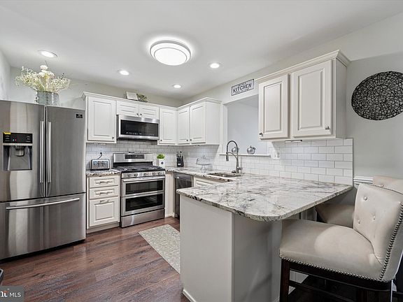 Step into this beautifully maintained end-unit home, offering 2 bedrooms, 1.5 baths, and a finished basement. The bright living room welcomes you with gorgeous flooring, neutral walls and a bay window. The adjacent dining area flows into a well-appointed kitchen with modern appliances, granite countertops, ample counter space, and seating for two. A cozy family room with a wood burning fireplace provides flexibility—perfect as a playroom, home office, or retreat as well. Step through sliding doors onto a custom deck, ideal for morning coffee or summer gatherings. The beautiful yard is ready for outdoor enjoyment. Upstairs, two oversized bedrooms share a stylish Jack-and-Jill bath with an incredible amount of closet space. The finished lower level offers endless possibilities—game room, movie lounge, or guest space—plus a laundry area and extra storage. Located in a pet-friendly community with low-maintenance living, this home is move-in ready. Schedule your private showing today!