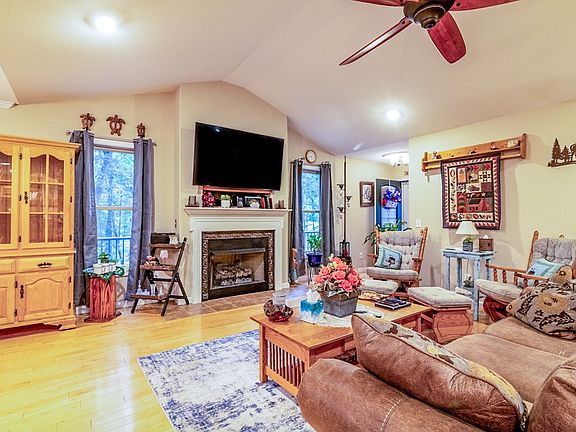 Enjoy country living in this beautiful open concept home in the desirable Cumberland Cove subdivision! The convenient, long circle drive welcomes you to the home that has new, wrap around decking, and a fenced yard for your furry friends. As you walk through the front door foyer, you will be welcomed into a large living space with hard wood floors, a vaulted ceiling and beautiful natural gas fireplace. The kitchen has solid wood cabinets, lots of counter space, new black stainless refrigerator and tile flooring. The master bedroom features a trey ceiling, hardwood floors and a door leading you onto the deck. The master bath has double sinks, and a large walk in closet with custom storage system. You will find a workshop, and lots of storage in the garage, along with the new storage shed. Full walk in crawl space with more storage options and large concrete pad. This home also has a Generac system in case of power failures. TVs in the living room and bedroom are staying in the house too