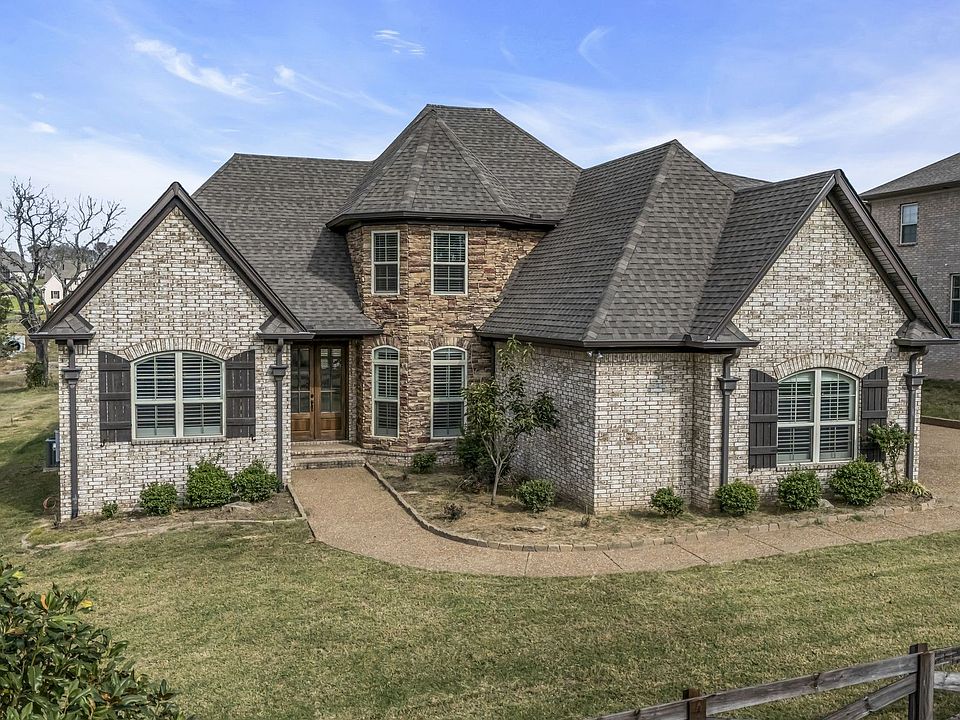 This stunning two-story home set on approximately 0.89 acres. Upon entering, you're welcome by an elegant chandelier and a spacious foyer that leads to a bright living area with high ceilings. The second floor features a Juliet balcony overlooking the main living space, which includes a cozy fireplace. Hardwood floors extend throughout the home. A massive bonus room sits above the three-car-garage. On the main level, you'll find two bedrooms, including a Primary Suite with separate his-and-her closets and vanities, as well as a large walk-in shower and soaking tub. The fully equipped kitchen is connected to a charming keeping room. The covered back patio is ideal for relaxing.