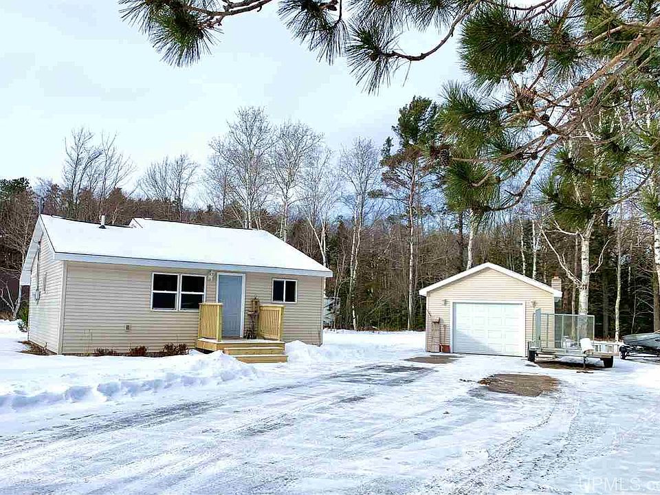 Let's go sit at the bonfire on the creek together! Or do you want to fish? This adorable, cozy home is perfect to relax at. Low maintenance, low bills, low property tax, nice flat driveway with plenty of storage in the huge garage with work bench. It's a small ranch style home! Main floor living! One bathroom with two bedrooms. Maybe one of the bedrooms could be a nice closet or office space. Plenty of room to park your boat and trailer on .69 Acre. The nice thing too is the location! Close to grocery, gas, banking, vet, and schools. Cute eat in kitchen and all the appliances are staying. New 96%high efficiency Lennox furnace installed in 2018, New front porch in 2020, Newer electric panels in house and the garage, Newer roof and siding, Well was New in 2013, New Smart locks and deadbolts, new flooring in bedrooms and window treatments. New Frontload - Stacked High Efficiency Washer & Dryer. The detached garage is 16x32 with new insulation in all walls, new workbench, pegboard, light fixtures and shelving units. Maybe you'd like to add onto this home someday, or not...Perfect for so many kind of buyers! Did you see the price! It's a beautiful setting and large parcel. This is Sands Township too. This might be your home. Schedule your tour today.
