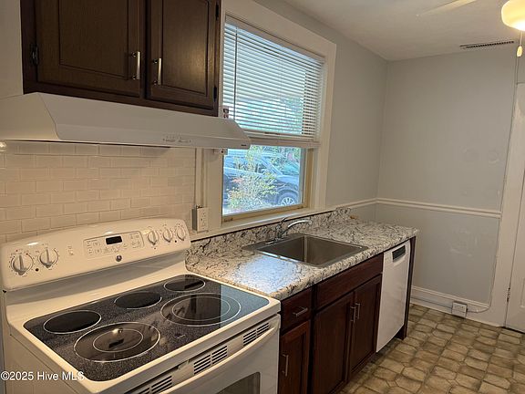 The single-story home was recently updated and is centrally located in New Bern, NC. The home sits on a corner lot & driveway exits on both Simmons St & Grace Ave. Inside offers living room, dining area, kitchen with all appliances & washer/dryer connections. Both bedrooms are sizable & share a full bathroom with a walk-in shower located in the hallway. Landscaping and lawn care are provided. The house has immediate access to grocery stores, shopping, restaurants & HWY 70 E. REQUIREMENTS: 650 + credit score, income requirements, Renters Legal Liability Insurance, and security deposit.