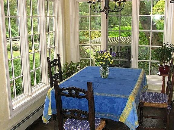 A gourmet kitchen featuring a Thermador Professional oven,granite countertops,butcher block center island, antiqued cabinets and limestone tile floors opens to a flagstone floored breakfast room and sunroom. The historic character of the living and family rooms awaits with exposed beams,random width hardwood floors,deep pocket windows,built-in cabinets and bookshelves,pocket doors and a wood burning fireplace. A large picture window frames the formal dining room. A spacious master bedroom with a private bath benefits from ample closet space. The third floor features an office,studio or a 4th bedroom. A complete guest cottage offers many possibilities. Very well maintained:newer roof on the main house and cottage. Discover the charm and elegance of this one of a kind home. All corporate inspections completed and the reports and repair invoices will be provided. Agent: ***3.25% co-op!***