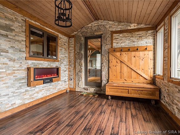 - Description: Sliding wood doors, and beams,Flooring: Wood