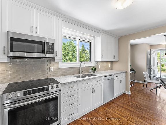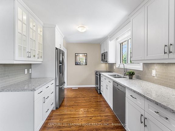 Prime Location! Stylish Starter Home with Basement Suite Potential.This charming starter home checks all the boxesideally located just minutes from Hwy 401,making your daily commute a breeze. Nestled on a premium corner lot, the property offers added outdoor space, privacy-enhancing tall shrubs, and unbeatable access to nearby shopping, schools, and recreation facilities. Step inside to find a beautifully updated kitchen with a modern touch, gleaming hardwood floors throughout the main floor, and a warm, welcoming layout perfect for first-time buyers or small families. Enjoy summer days on the spacious backyard deck complete with a dedicated BBQ areaideal for entertaining! The roof was newly replaced in 2023, and the home was converted to efficient natural gas in 2014. Bonus: A separate entrance to the basement opens up the exciting opportunity for a second suite, in-law space, or potential rental income. This is the perfect blend of comfort, location, and future valuedon't miss your chance to call it home!