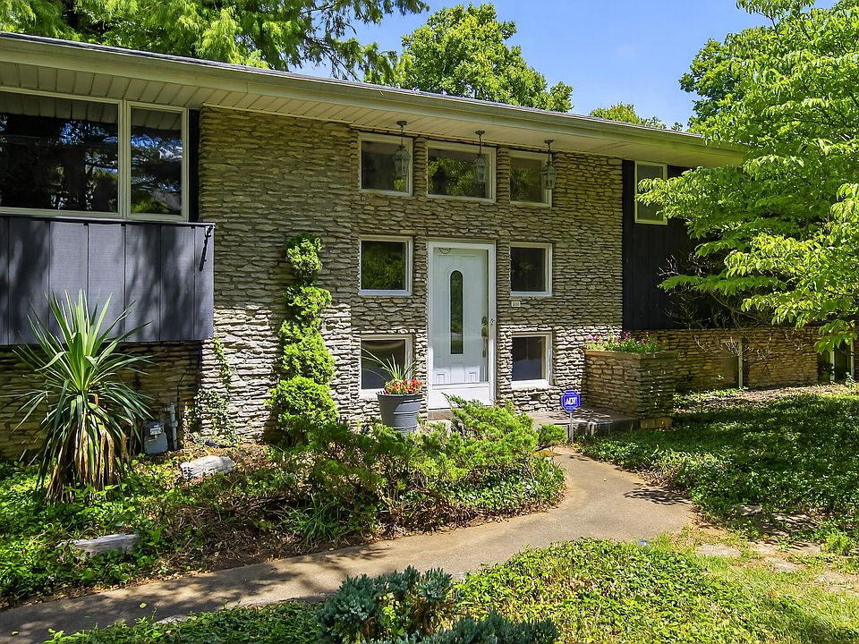 Reduced, Bring Your Ideas and Step into a piece of history with this Mid-Century Modern Home offered for the very first time. Nestled on a serene lot bordering the Country Club, this property offers a blend of privacy and convenience. The classic mid- century design features a blend of fieldstone and cedar siding creating a warm and inviting exterior. The charming side deck provides a perfect spot for morning coffee or gatherings. The landscape is a work of art with stacked stone retaining walls extending to the backyard. Mature trees: bald cypress and evergreens frame the home. Inside, the spacious 5-bedroom, 3-bath layout ensures everyone has a private space. The living room and dining room are an airy, open space perfect for relaxing or gatherings with loved ones and friends. The cozy den features a wood burning fireplace to create a relaxing setting. The kitchen offers a timeless design, boasting walnut cabinetry and a breakfast bar. The partially finished rec. room offers potential with the addition of flooring for work out, play or a media room. The 4-car carport provides plenty of covered parking. A Unique Home & Great Location.