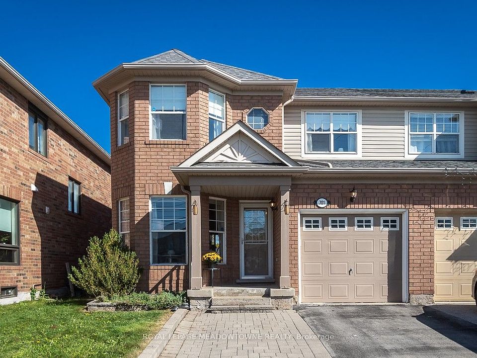 Welcome to 701 Thompson Road South, a Lindbrook 1500sqft semi-detached home in the highly desirable, family-friendly Beaty neighbourhood. Featuring 3 bedrooms, 2.5 baths, and parking for up to 3 vehicles, this home offers a spacious and functional layout. The bright eat-in kitchen boasts stainless steel appliances, warm-toned cabinetry and direct access to the fully fenced backyard with a deck perfect for entertaining. The main floor showcases a formal dining/living room, a cozy family room open to the kitchen, hardwood flooring, and big sunny windows that fill the space with natural light. Upstairs, you'll find 3 generously sized bedrooms including a primary retreat with a walk-in closet and ensuite with a separate tub and shower, plus a 4-piece main bath. The beautifully finished basement extends your living space with a large rec room featuring big windows, laminate flooring, and a laundry room. An energy audit was completed in 2012 and insulation was improved providing added comfort and efficiency. The roof, furnace and a/c were also completed at that time. With interior garage access and a great location close to parks, schools, and amenities, this home is move-in ready for the next family to enjoy.