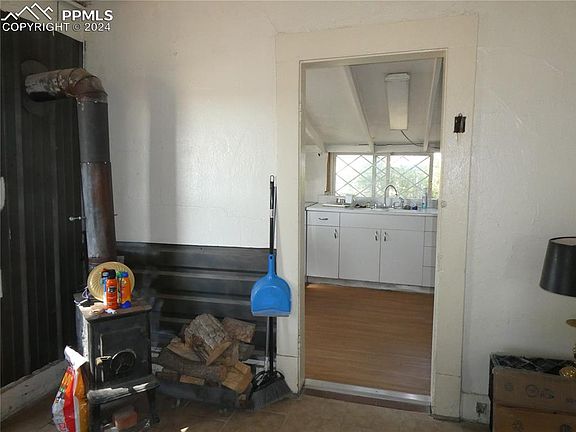 This one-bedroom home is situated on a spacious corner lot that spans over an acre in Simla. The property features a heated enclosed front porch, tile entry living room area with wood stove, and kitchen equipped with laminate flooring, gas range, and refrigerator. The bedroom has laminate wood flooring, while the bathroom includes a shower and laundry facilities. The home boasts a metal roof, fenced yard, and mature trees. Additional amenities include two outdoor hydrants, a fenced garden area with drip lines, and a garden shed ready for planting. The property also includes a chicken coop prepared for chicks and pasture suitable for livestock. The large southern pasture is fully fenced and equipped with a lean-to shelter for livestock or horses, complete with water and electric. The storage shed/chicken coop also has a metal roof and nearby water and electric utilities. It may be possible to split the lot for a second home, taps are 3500 each. Property is sold "As Is".