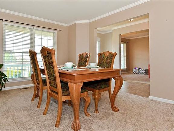 Spacious 2 story home with 3 car oversized garage,vinyl siding, enclosed soffits, and cozy covered front porch. The interior has new carpeting throughout (4/18). As you enter you have a formal dining room on one side and living room on the other, both with crown molding. The great room has a wood burning fireplace, bay window, crown and ceiling fan. The kitchen features a custom cabinets with crown tops, large center island, planning desk, black on black appliances, walk-in pantry and breakfast room. The upstairs has a large master suite with walk-in closet and luxury bath with separate garden tub, shower and dual sinks. There are 3 additional bedrooms(1 has a walk-in closet) with ceiling fans and a hall bath. The lower level has an egress window and rough-in plumbing. The backyard is level and has a huge patio great for entertaining. Easy access to shopping, restaurants and Hwy 70.