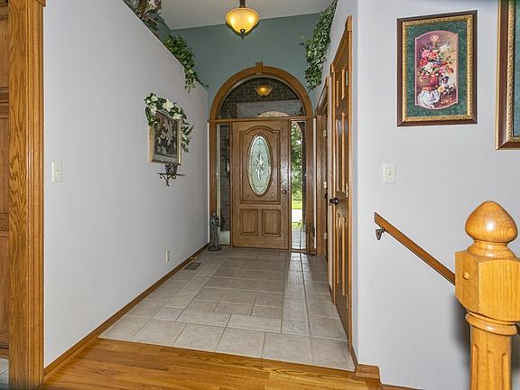 You will absolutely love this custom one owner builder's personal home! So much to offer with 5 bedrooms, 3 baths and a 4+ oversized garage! No corners cut here boasting Hickory kitchen cabinets with crown molding, solid oak wood doors throughout home, 10 and 12 ft. ceilings & solid oak flooring in main living areas, gas fireplace, tile flooring in kitchen, breakfast nook & laundry, granite countertops in kitchen and new carpet! Brand new roof! The kitchen features new oil rubbed bronze lighting and plumbing fixtures, recessed lighting, tile backsplash, pantry and many cabinets. Main floor 6x7 laundry includes sink and storage. One of the best features is the awesome view from the screened-in porch which allows ample room for guests. The deep 4th car garage measures apx. 38 ft. deep plus more space for a 5th car or those man toys, 8 ft. insulated doors, sheetrocked with insulated walls & ceilings, RV parking to the exterior including a 220 outlet. Full fin. bsmt. includes another 2 bedrooms, fam. room with a walk-out pit area wired for a hot tub, full bath, new wetbar w/ fridge, bose surround sound speaker system and a concrete storm room with steel door plus more storage! All this on located on a lake lot with a view of another lake from the front, sprinkler system, well and wrought iron fencing. Currently the 3rd bedroom upstairs is used as a library. Owner/builder will install a closet for $3,000 if needed! There's so much more to offer you must see for yourself!