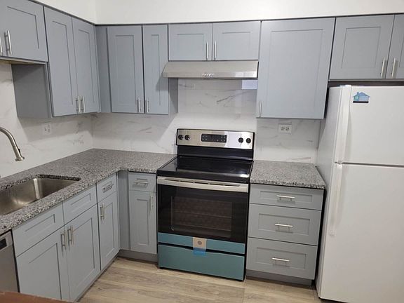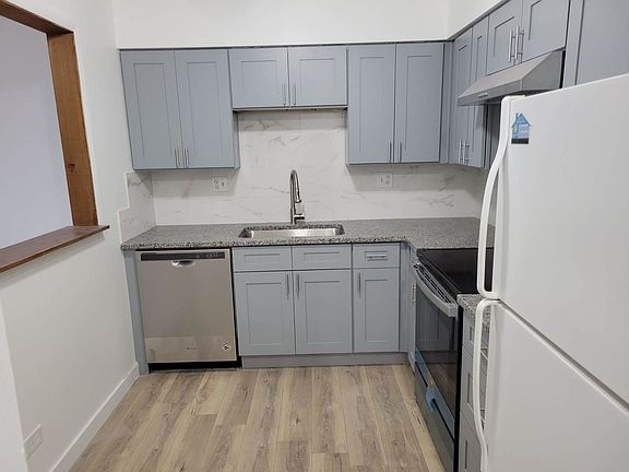 Remodeled top floor unit with balcony. New kitchen with grey cabinets, granite countertops, stainless steel range, dishwasher and hood. New bath vanity. New laminate flooring, freshly painted. Bedroom features walk-in closet. Great unobstructed view from the balcony.