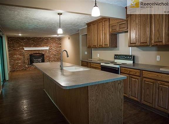 Check out this amazing, updated kitchen w/huge island and custom cabinetry that opens to the living room and family room with a brick fireplace. There is new dark wood flooring throughout the living and kitchen areas. A huge sunroom adjoins the family room for extra living space! There are 3 nice sized bedrooms, and new windows throughout the house.The exterior boasts a newer roof and AC, new garage door, maintenance free vinyl siding and a charming front porch! There is a lot of house for the money here!