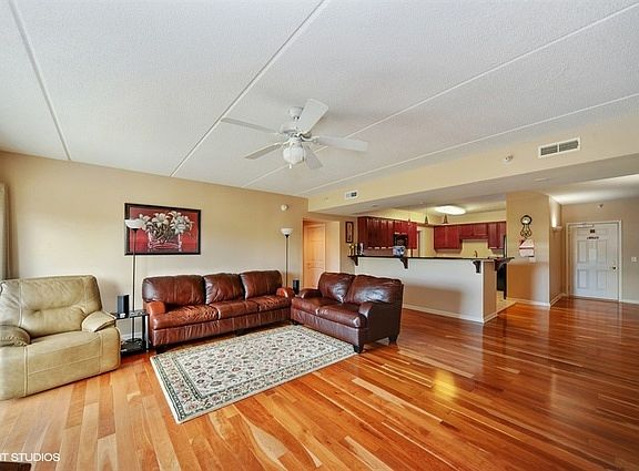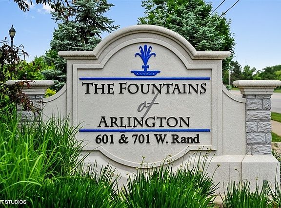 Exceptional third floor unit in the luxurious Fountains of Arlington! Expansive living room with sliders leading to private balcony. Separate formal dining room/optional den area. Spacious dual master suites, walk-in closets. Beautiful European tiled baths, dual vanity, separate tub/shower. Designer kitchen, cherry cabinets, granite counters, extra lg breakfast bar. Separate laundry rm in-unit with storage cabinets and utility sink. Radiant heated flooring throughout. Spancrete ceilings maintain temperature, muffle sound. Enjoy the amenities - party room and exercise room! Large storage unit and heated underground parking. Dual balconies, convenient location to shopping, dining, train and expressways. This is one of the largest units in the building.