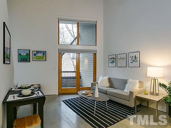 Terrific opportunity for urban living in a renovated, historic, industrial loft! Airy spaces, with exceptional soaring ceilings, concrete floors, exposed wood beams and a private patio great for dining or entertaining. Large owner suite and a downstairs second bedroom which can be an office or den. Kitchen features granite countertops, stainless steel appliances and a gas range. One assigned parking space included and secure gated entry. Walkable to all things downtown, Duke University, and Ninth Street.