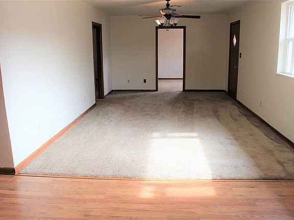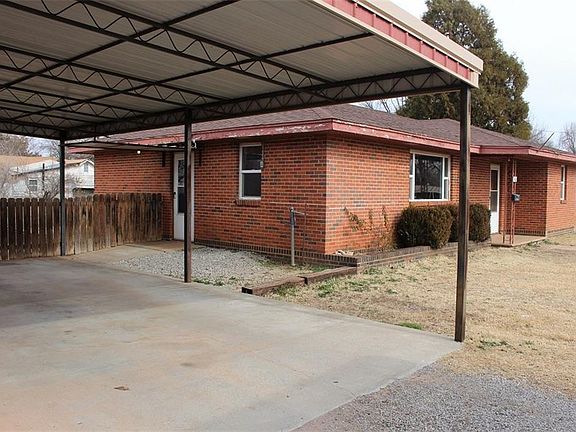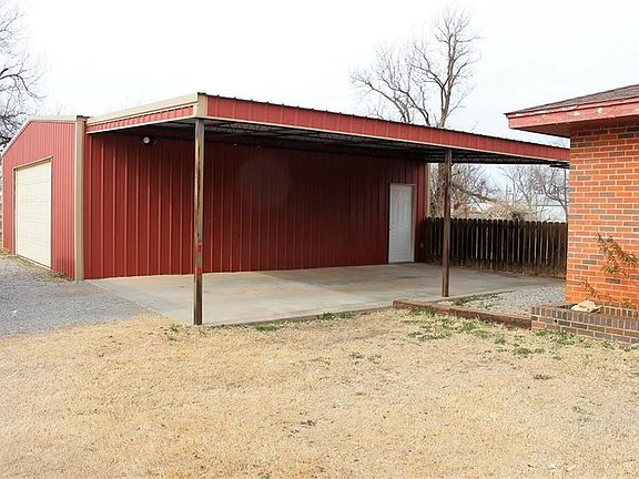 3 bed, 1.5 bath, brick home with 1,232 mol sq ft. on big corner lot. Kitchen features oak cabinets, large pantry, dishwasher and tile counter tops. Newer carpet, ceiling fans and roof. New vinyl EE windows. New CH&A unit. 30' x 30' full insulated detached garage and workshop with a 16' x 8' overhead door with automatic lift. Garage/workshop also includes a gas heater and 220 amp electricity. Attached 30' x 16' carport. Cellar. Storage buildings. Fenced yard.