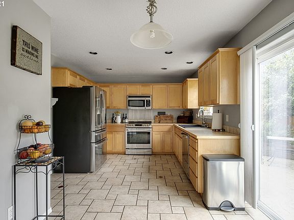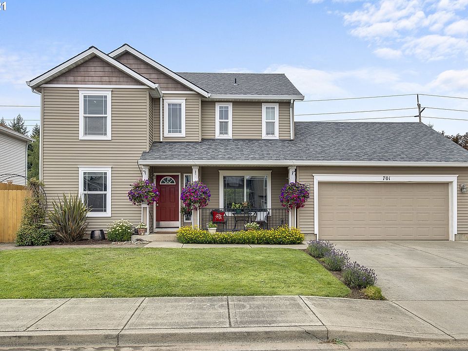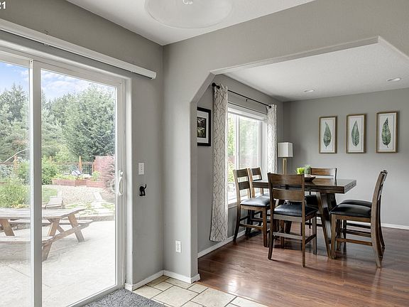 This yard! This stellar yard w patio & raised beds overlooks a forested green space & comes complete w a 4 bed, 2.5 bath house in a tucked away neighborhood. The curb appeal & porch are super & the extended concrete driveway provides additional car/boat/small camper parking? There is a bedroom/office & half bath on the main. The kitchen has stainless appliances including a new range, tile floors, a pantry & opens up to the patio. The living room has a cozy fireplace perfect for rainy days.
