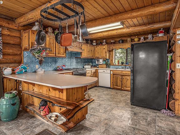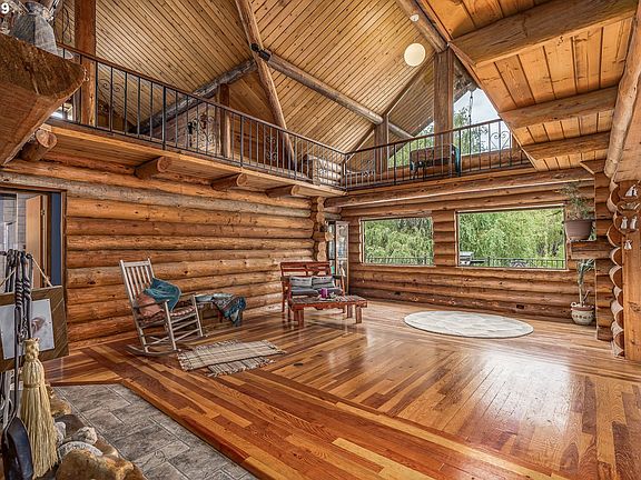 Impressive traditional log home on a well appointed 11.68 acres, provides space & amenities as well as proximity to town. Extended master bedroom w/ slider to deck,open kitchen & dining area & daylight walk out basement. Detailed entry mud room w/ built in storage & attached media/sun room featuring heated floors & wall to wall windows. Mixed use land, year round creek, excellent private well & Multiple garage/shop outbuildings.