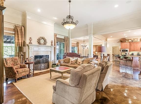STUNNING HOME NESTLED IN THE BACK OF S/D. SITS ON 1 AC WITH OVER 3300 SQ. FT OF LIVING. LG OPEN KITCHEN, GAS RANGE, 2 OVENS, EXTRA SINK IN ISLAND, GRANITE COUNTERS, S/S APPLIANCES. DEN WITH GAS FP., STUDY OFF OF MASTER, 2ND LIV. AREA FOR GAME ROOM, MEDIA ROOM ETC., W/POCKET DOORS THAT EASILY CLOSE OFF ROOM. BEAUTIFUL SCORED FLOORS AND CROWN MOLDING THROUGHOUT, SURROUND SOUND SPEAKERS IN DEN, MASTER, & BACK PATIO THAT IS COVERED WITH HOOK UPS FOR TV. IN-GROUND POOL AND SPA WITH FENCED IN YARD.
