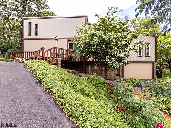 A stunning home flooded with natural light in desirable Greentree subdivision! This contemporary home delivers a massive living room, light and bright sunroom, sizeable dining room with a glass slider to the back deck, two bedrooms, private laundry room, remodeled full bathroom, separate breakfast room, and an exceptional kitchen with stainless steel appliances, granite countertops, and a wall of windows overlooking the greenery in the backyard. The upper level owner's suite is extraordinary offering a private wood fireplace, large walk-in closet with built-ins, and a recently remodeled full bathroom with tile shower and dual vanity. The owner's suite is rounded out with many windows offering a stunning view of Mount Nittany. The partially finished walkout lower level boasts a family room, full bathroom, additional bedroom with an egress window, bonus room, and ample storage space in the unfinished portion of the home. Additional highlights include built-ins in closets, new light fixtures, fresh paint throughout, and solar panels to keep your utility costs LOW. This home has it all in a prime location!