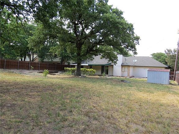 This property offers a double lot with mature trees and an oversized carport that can house up to 6 vehicles. Very large fenced backyard and large patio area out back is great for entertaining. This home is near everything, but still in a quieter area of Azle. Great room has a stone fireplace and hardwood floors. The kitchen has tons of storage, a window seat, and an island. There are 2 bedrooms downstairs and 1 upstairs. Several large closets as well as a huge oversized walk in closet in the master bedroom. Very nice sized master bedroom that will accommodate larger furniture. Newer energy Efficient windows, dishwasher, hot water heater, and retaining wall out back just replaced.