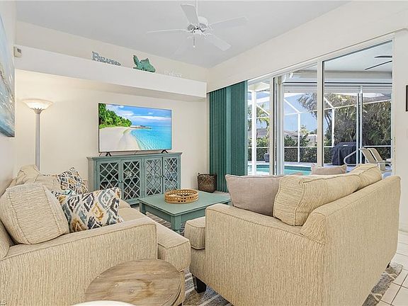 Come see this tropical island home just steps away from the beautiful beaches of Marco Island! Spacious layout for both family and friends -- this home has it all: a heated lap pool, two living rooms, plenty of outdoor seating, a great yard - and all within walking distance (0.25mi) to the beach and some of Marco Island's most sought after restaurants. This home is perfect for gathering family and friends under one roof and yet having plenty of space if you want time alone. Massive master suite with walk-in closet and full ensuite bathroom. 3 large guest rooms with big closets including a gigantic guest suite with an attached half bathroom! You and your guests will love the eastern facing, heated, salt water lap & swimming pool with water feature and the huge lanai with tons of seating in both full sun and covered areas. The home -- currently set up as a very successful short-term rental -- comfortably sleeps ten and with two separate living areas, is well equipped to continue as a STR with everything you need for a trip to the beach, including bikes and helmets, beach cart, umbrella and chairs. The home's location is perfect for enjoying the best of Marco Island -- walk to both Winterberry Drive Beach Access point and Marco Walk, which boasts excellent restaurants, shopping and the only movie theater on the Island. And just across the street from Marco Walk is miniature golf at Marco Golf and Garden. The house is also less than a mile from the world-class JW Marriott, where you can enjoy its world-famous spa as well as its 10 bars and restaurants. Keep this STR running as is or make this your dream home -- the opportunities are endless, schedule your showing today!