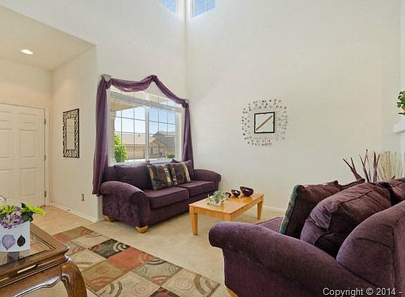 Great home in Fountain greets you with a large wraparound porch, perfect for entertaining or sitting out and enjoying the views. Inside you will find a large living room that opens to the second level. A double sided fireplace between the living and family rooms provides a warm and inviting focal point for both rooms. On the family room side of the fireplace you will find lots of bookcases and built-ins perfect for storage and displaying all your treasures. The spacious kitchen/dining room combo along with the family room are open and bright with 9 ceilings. The kitchen has 42 cabinets and a pantry. Upstairs a versatile loft overlooks the living room. The large master bedroom has an attached bathroom with a double vanity, shower/tub combo and a walk-in closet. A full bathroom and 2 more bedrooms, one with a walk-in closet, finish up the second floor. The backyard has a large concrete patio as well as a basketball court, and landscaping.