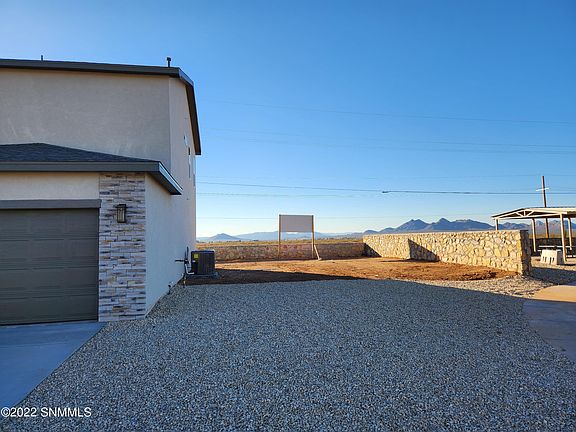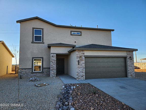 New home w/ 4 beds, flex room, 2.5 baths, & 2 car garage. Finishes include wood-look floor tile (carpet in the bedrooms), tiled showers/shower floors, granite countertops throughout, & stainless steel kitchen appliances (including fridge), & cabinet hardware. Energy efficient upgrades include 2x6 exterior walls, blown fiberglass in exterior walls, spray foam insulated attic, low-E double paned vinyl windows, & high efficiency HVAC system. Nearly twice as efficient as a code built new home. Floorplan features open concept w/ kitchen island, mud room w/ drop zone, 1/2 bath on main level, double sinks in Owner's Bath, & spacious rear patio & side yard. Next to park w/ no immediate rear neighbors. Convenient location near Highway 70 on the East Mesa. Near NASA, White Sands Missile Range, schools, shopping, restaurants, Organ Mountains-Desert Peaks National Monument, & White Sands National Monument.