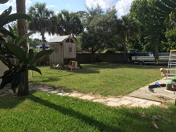 Situated on a surprisingly large lot with plenty of room for RV or boat storage, this 3/2/2 home is defined by a simple beauty and elegance that fills every corner of the space. Soaring ceilings give the impression of grandeur and create a sense of openness in the living area. The updated eat-in kitchen features bright white cabinetry, stainless steel appliances, and fabulous modern counters and backsplash. French doors lead out to a sizable screened in porch which overlooks the huge backyard complete with mature trees and a separate storage shed. Other desirable features include fresh, remodeled bathrooms, stylish wood-look flooring throughout the home, tropical landscaping, and an insurance-friendly hip style roof. What a gem!