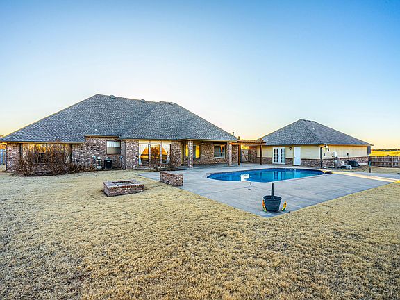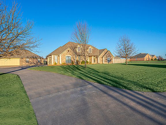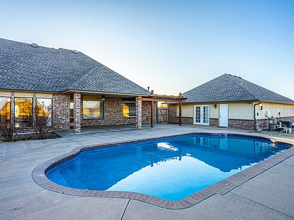 This Beautiful spacious property sits on .93 acres (mol) With a total of 3900 sq foot . Main home has 2 car attached Garage with 3278 Sq foot and The Cabana/Guest House has a oversized 2 car garage with 600 Sq foot of living space, kitchen , living rm, full bath and bedroom. Home has 4 bedrooms 2 1/2 Bathrooms Downstairs and one full Bathroom and Large Bonus room upstairs . There are two Living areas downstairs and fourth bedroom could also be a study. Granite Kitchen Tops, breakfast bar, Eating area and plenty of cabinets . Master bathroom has Jetted tub, Shower, Double vanities, walk in closet. Utility room is large with custom built shelving for extra storage. Large outside Covered porch and A Gorgeous pool , extra concrete, Pergola and Fire pit . Just a mile off of I-35 short commute to Edmond or Guthrie