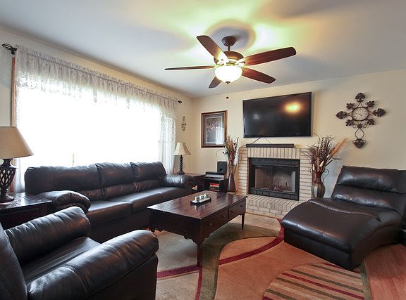 You'll love this well maintained 3 BR ranch style home w/many upgrades~Upgrades include new carpeting, new appliances, lighting/fans, new A/C, new concrete patio & garage door opener~Interior rooms freshly painted~Master BR w/private bath~LR w/WB fireplace~6 panel doors~Dining room w/doors to patio/fenced yard~Huge basement w/RI for 3rd bath~Close to shopping/schools~Just a block from park~Nothing to do but move in!