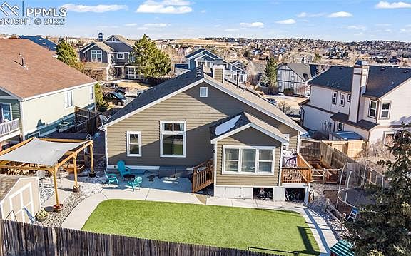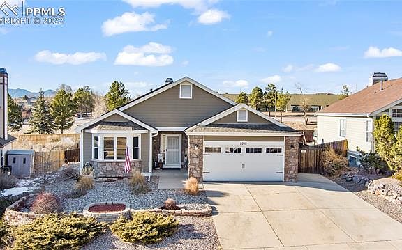This five bedroom ranch style home boasts over 3,000 square feet and is located in the highly desirable Cottonwood subdivision. Upon entry you find a bedroom/office and a formal dinning room that flows into the eat in kitchen that includes stainless steel appliances, vaulted ceilings and a breakfast bar. Off the kitchen is a large living room that includes a gas burning fireplace, custom built ins with beautiful stone work and a walkout to an enclosed sunroom. The master bedroom offers plenty of natural light, a five piece adjoining bath and a walk in closet with an ample amount of space. The main level includes three additional bedrooms a full bath and washer & dryer set up. The basement offers a large family room, possible wet bar set up, an additional bedroom and full bath. You will also find a ton of storage space in the basement and under the back deck. This home offers fantastic views of Pikes Peak and the front range. Some other features include RV parking, a Xeriscape front and back yard, recently installed solar panels that will be paid off at closing, a new Rheem furnace, 200 amp electric with sub panel for emergency electricity, champion windows, insulated garage door, a concrete walkway around artificial turf/patio and pergola with 12x16 concrete pad, 10x12 shed, 5x8 shed. Exterior updates recently completed include stone installation, a new roof and exterior paint. Not included in square footage is permitted 120 sq ft sunroom and 120 sq ft basement storage to bring the total square footage to 3,288 square feet. Don't miss your chance to own this fantastic home located in the award winning school District 20!