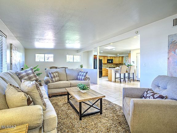 Timeless Charm with Mountain Views & Modern Comfort! Step into a piece of Tucson history with this beautifully crafted burnt adobe home, built in 1960. Brimming with character & timeless charm, this 4-bed, 2-bath home seamlessly blends mid-century style with today's modern comforts. Nestled on a spacious lot, the home welcomes you with a covered front porch perfect for sipping morning coffee or relaxing as the sun sets behind stunning MT. Vistas. Inside, the thoughtfully designed layout features a bright & inviting living space. Enjoy a formal dining room, a cozy family room, a well-appointed kitchen complete with a center island, & breakfast nook. The picture window in the living room perfectly frames the amazing Mountain views, bringing the outdoors in & making every day feel special.