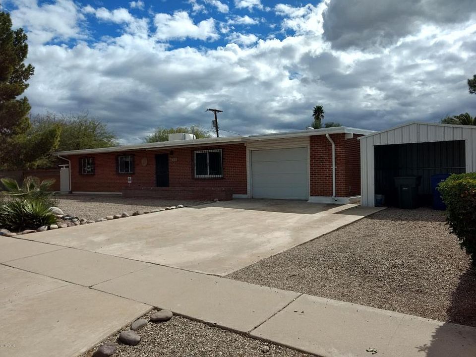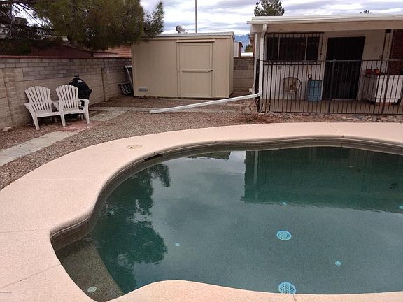 Seller will consider offers 150 - 160K.VERY CLEAN move-in ready 3 bd 2 bth home with AC, PebbleTec pool, single car GARAGE (expensive metal carport could easily be a 2 car garage), separate interior WORKSHOP, large .24 lot, great privacy, room for the kids swing set etc. Fenced for a dog run. Includes a nice mountain view. Newish AC system and hot water heater only a few years old. Solid BRICK HOME with ALARM SYSTEM and other security features. Includes water softener and reverse osmosis in kitchen. Note the wide flat paved driveway. Home has front and rear gutters. No busy street behind the home. WASHER & DRYER included! FHA = OK. EZ access to U of A, Davis-Monthan and medical, restaurants, banks, bus stops, shopping. A well kept neighborhood with pride of ownership. PRICED TO SELL!