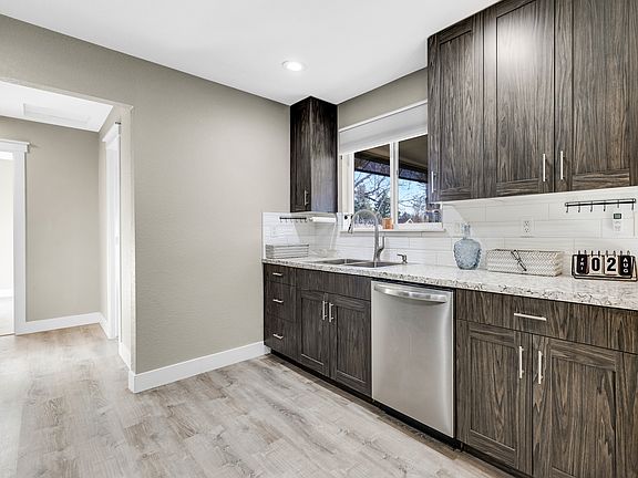 Exit the kitchen on the 2nd level via rear sliding glass doors to a covered deck and a huge back yard. Great for gatherings and children! Front yard has a nice lawn and landscaping. The back yard also has double-gates if you need to park an extra vehicle or three, perhaps a camper or fifth wheel? It is a huge back yard!