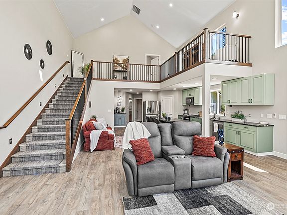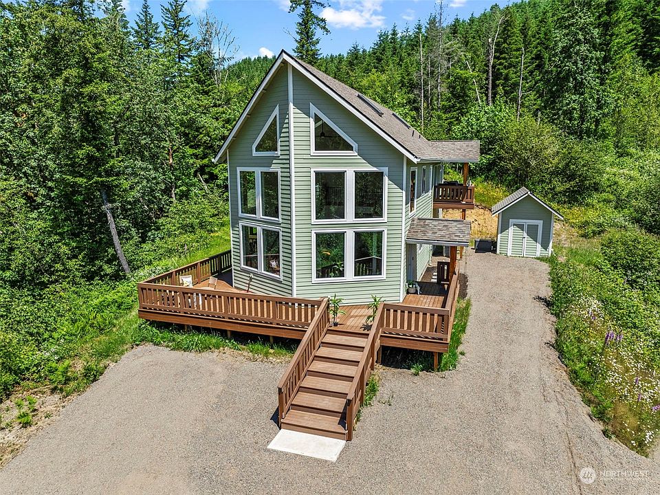 Endless Possibilities from Airbnb, Vacation Home or Your Primary Residence.Gorgeous newer chalet home w/ picturesque windows,24' cathedral ceilings that overlooks Kalama River w/ deeded access to enjoy fishing,kayaking,or picnicking on the river.Features a fantastic setup w/ 2 primary bedrooms on each flr of the house w/ coffee bars in suite,lg tile W/I showers,18' ceilings. Loft w/ xtra seating space to enjoy a good book or a cup of joe in the morning,or…East & West decks w/ covered BBQ patio,full home generator included.Located on a quiet street, w/ 4.5 acres.Enjoy the wildlife that abounds w/ private year around creek.