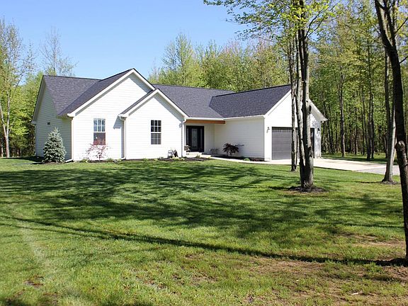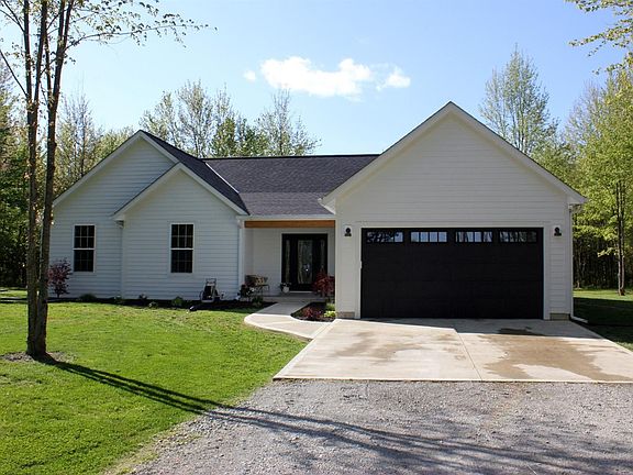 2 year old custom built ranch on 7.5 wooded acres. Open concept featuring 3 bedrooms, 2 baths, with solid oak flooring throughout. Granite kitchen with large pantry and gas stove. Full basement with 1st floor laundry. Master includes an ensuite with walkin closet. Located on quiet country road. 5 minutes to SR 28. Second possible homesite. Agent owned.