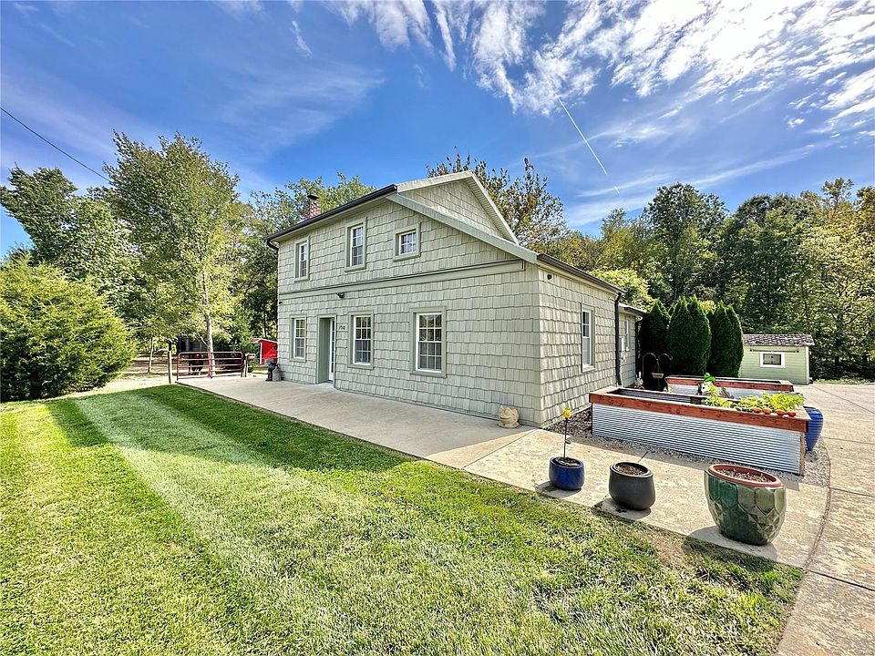 STOP THE CAR!! This completely remodeled farm house won't last long!  Inside of this home boasts an open floor plan with beautiful wood floors and unique historic features throughout.  Beautifully remodeled kitchen with stainless steel appliances and plenty of cabinets for storage. Newer 4 car garage to store just about anything. Over 50k in concrete work, plenty of extra parking space, turn around driveway, with beautiful outdoor kitchen/patio. Raised garden beds, planters & fully finished heated outhouse/bathroom with slop sink.  This property has been meticulously maintained for a view of the natural spring fed creek year round.  Multiple cleared section of property behind garage space & behind horse barn. Open field to the side of the house is fully fenced for farm animals w/ electric fencing.  Horse friendly stall for you horses.  No restrictions.