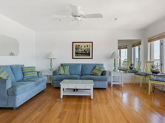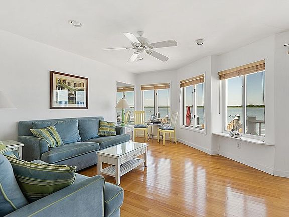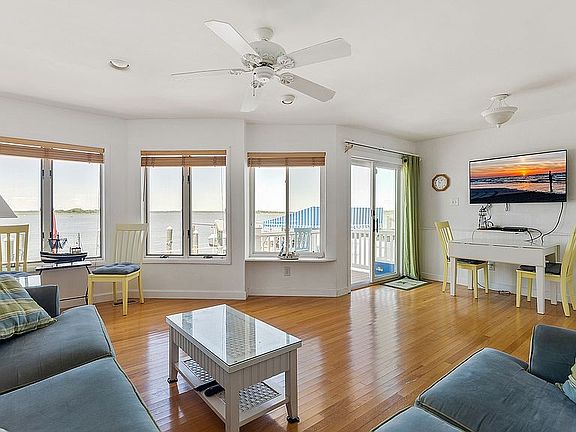 Your first floor, corner condo, on the water awaits! Upon entering you will be pleased to find beautiful hardwoods that extend throughout the main living areas. An abundance of natural light abounds from all areas of this unit. The living room hosts the slider to a covered porch, great for morning coffee, that leads down to the main deck. A dining area adjoins the kitchen which offers stainless steel appliances and ample cabinet and counter space. 2 airy bedrooms and 2 full baths complete this floor plan. Your outside Trek deck space is incredible! Room for a table and chairs, grill – all overlooking the water! You also have access to the dock, private deck and boat slip – this unit is ready to use and comes partially furnished! Situated in the Sundowner Condo and just a short walk to the beach, local restaurants, and more! Don’t miss your chance to own a property like this!