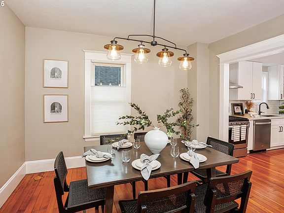 Just staged photos loaded. You'll love this classic 1904 bungalow that has been beautifully restored and remodeled while retaining much of its original woodwork and design details! The large enclosed porch and open floor plan are the first things that greet you in this old world charmer. Lovingly remodeled, it features original fir floors, stainless steel appliances, gas stove, updated tile, a custom build cabinet, and modern light fixtures. The main floor features living and dining rooms, a bedroom & full bath. The primary bedroom is upstairs with dual walk-in closets, a large bathroom and an adjacent 3rd bedroom. The basement is partially finished and a great space for a family room, workspace or office. You'll enjoy the large fully fenced backyard for gardening, entertaining and grilling. There is a custom-built shed for storage and a mud room for when you come back inside. Central AC, EV charger ready, & Nest thermostat. Blocks from Portland Mercado, Dutch Bros, FoPo Food Carts, and Essex Park. [Home Energy Score = 5. HES Report at https://rpt.greenbuildingregistry.com/hes/OR10101873]