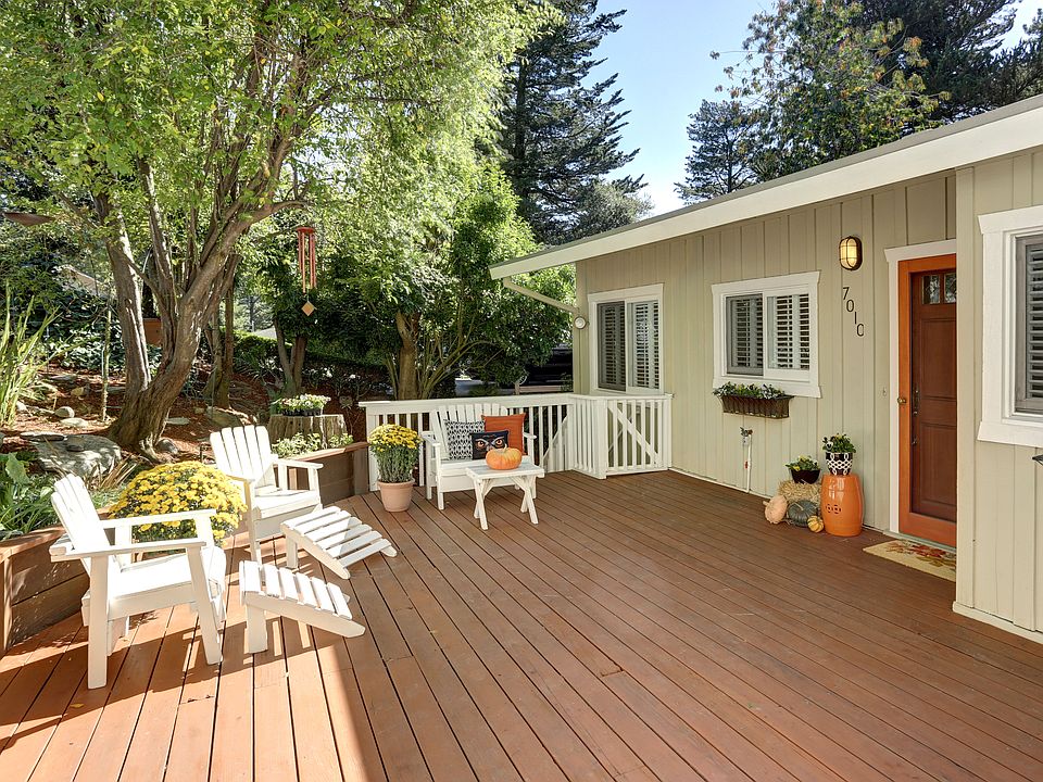 Serene retreat with sunny decks and play area. Three plus bedrooms, office space, updated eat-in kitchen, vaulted ceilings in living room, three bathrooms and 2-car covered garage. Minutes to Montclair Village, shops and great schools!