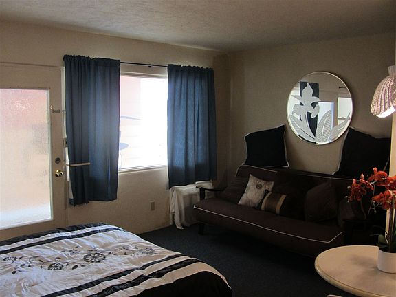 Compact and comfortable efficiency unit at the lovely Topaz Crest Condominiums. This very affordable alternative to a larger condo comes equipped with a spacious living area consisting of a kitchen/dining area, combined bedroom and living room area. It is clean and furnished with an outdoor patio spot for sitting out. The common area amenities include a large pool, assigned 1 car parking, laundry facilities, and outside shower. Close to a good Crest beach with surfing, and a Lifeguard stand with bathroom. Act quickly - summer is coming! Seller will hold a 1st mortgage to a qualified buyer.