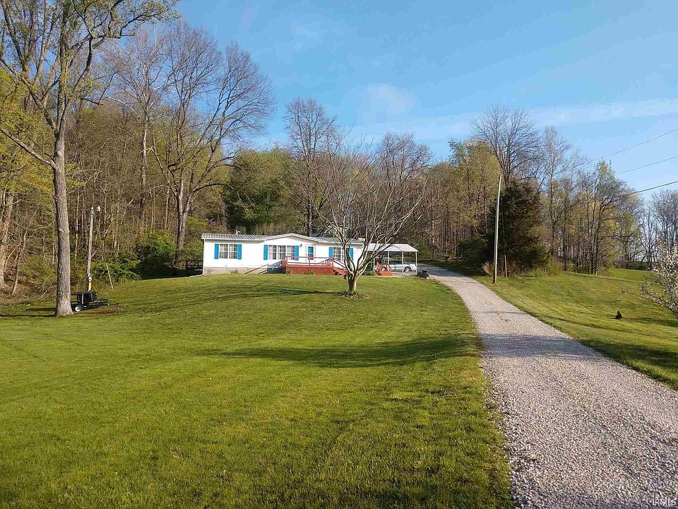 A bit of country living close to Bloomington's west side. Well maintained 3 bedroom / 2 bath, double-wide manufactured home on 2.18 acres. Newest improvements are laminate flooring, carpet, backsplash, shower heads, kitchen faucet, carport, chandelier, dishwasher, garbage disposal, electrical, and more. All appliances included. Driveway is shared with neighbor behind the home.