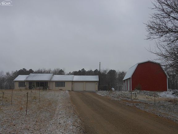 Wow you will want to make this your new home once you hear all the features this 4 bedroom, 3 bath home has to offer. Inside you have a nice large open floor plan that makes this an amazing family home, there are 3 bedrooms and 2 full baths including a master suite on the first floor, in the light and bright full walk out basement is another bedroom/bathroom combo. Finished family room and hook up for a wet bar. All this with an attached 2 car garage, large 24X32 hip roof pole barn that had all new steel put on last summer along with 2 new 9' insulated over head doors. Nice fenced in dog kennel and a chicken coop with fence. The picturesque 40 acres has trails cut through-out if your a hunter this would be a little piece of heaven.