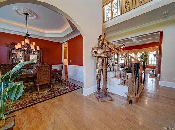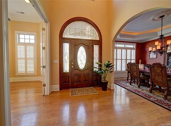Family is at the forefront of this spacious home in Matthews. Whether sharing meals in the formal dining room or popcorn in the movie theatre, this home brings people together. Entertain extended family in the keeping room as aromas from the enormous, custom-designed kitchen fill the house. A covered patio, spacious upper deck, and screened-in space offer generous outdoor space for any weather. A desirable master suite on the main floor features a master bath with heated floors, a chandelier, and walk-in shower. Upstairs are additional spacious and airy bedrooms. An open floor plan with hardwood floors, coffered ceilings, and custom lighting, this home also has two office spaces. The basement was built for family entertainment and features a bar set against a checked, tile floor, plus diner-style booths and a pool table. But, with over 2,100 heated square feet, plus a full bath, this lowest level can be easily transformed into a separate living space with its own entrance.