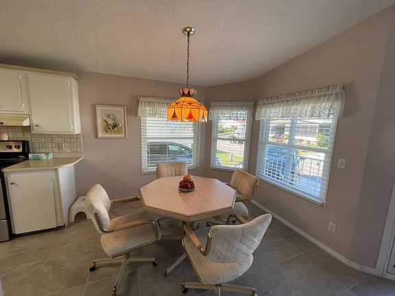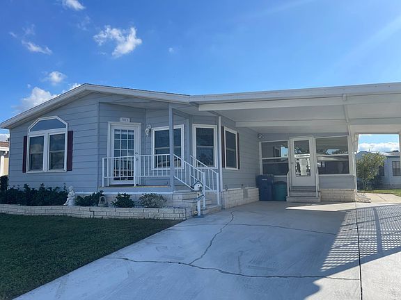 7011 Date Palm Lane, Ellenton FL. 34222 Ridgewood Estates 55+ Pet Friendly Community This waterfront 1989 model is almost 1,600 square feet and has ample room for living, dining and entertaining. It is being sold mostly furnished/turnkey. Just unpack your suitcase! This 2BR/2BA with a formal dining area, casual dining area, living room and a den or office has a newer 2018 shingled roof and 2018 A/C to keep it all cool! There are newer windows and some newer appliances. The kitchen is a light, bright Chef's delight! There are plenty of cabinets, a food pantry and all of the appliances. The casual dining, formal dining and living room have sheetrock walls, custom paint, 2 inch blinds, custom drapes and vaulted ceilings. Head down the hall to an area adjacent to the kitchen that could be used as a den or office. There is a side set Florida room/enclosed porch with glass windows off the den. There is a shed off the back of the enclosed porch that houses the washer/dryer (included in the sale). The master bedroom has a ceiling fan, sheetrock walls, custom paint, two closets (one walk in) and a door to the waterfront lanai off the back of the home. The master bathroom features dual sinks and a separate a walk-in shower. The waterfront lanai has indoor/outdoor carpet and screen/vinyl windows. The guest bedroom has sheetrock walls, custom paint, a ceiling fan, a walk in closet and vaulted ceilings. The guest bathroom features a single sink vanity, skylight and a tub/shower combination. The carport can park 2 cars tandem style. The yard is landscaped for great curb appeal. The lot rent is ~$1034 (actual 2023 TBD by community) and includes lawn mowing, edging and blowing and all the community amenities below. Ridgewood Estates features 24/7 guard gate, 2 Clubhouses; 2 Pools; Hot tub; Shuffleboard & Tennis court; Library; Billiards Room, Work out room, with a 7 day calendar of events to take part in. Come join in the Fun! Florida MH Sales, LLC cannot guarantee or warrant the accuracy of this information, measurements, or condition of any property. Measurements are approximate. All homes are sold "as is" and personal or professional inspection is encouraged. Lot rent is set by the community and is subject to change. All buyers must be approved by the community prior to closing on a negotiated sales contract.